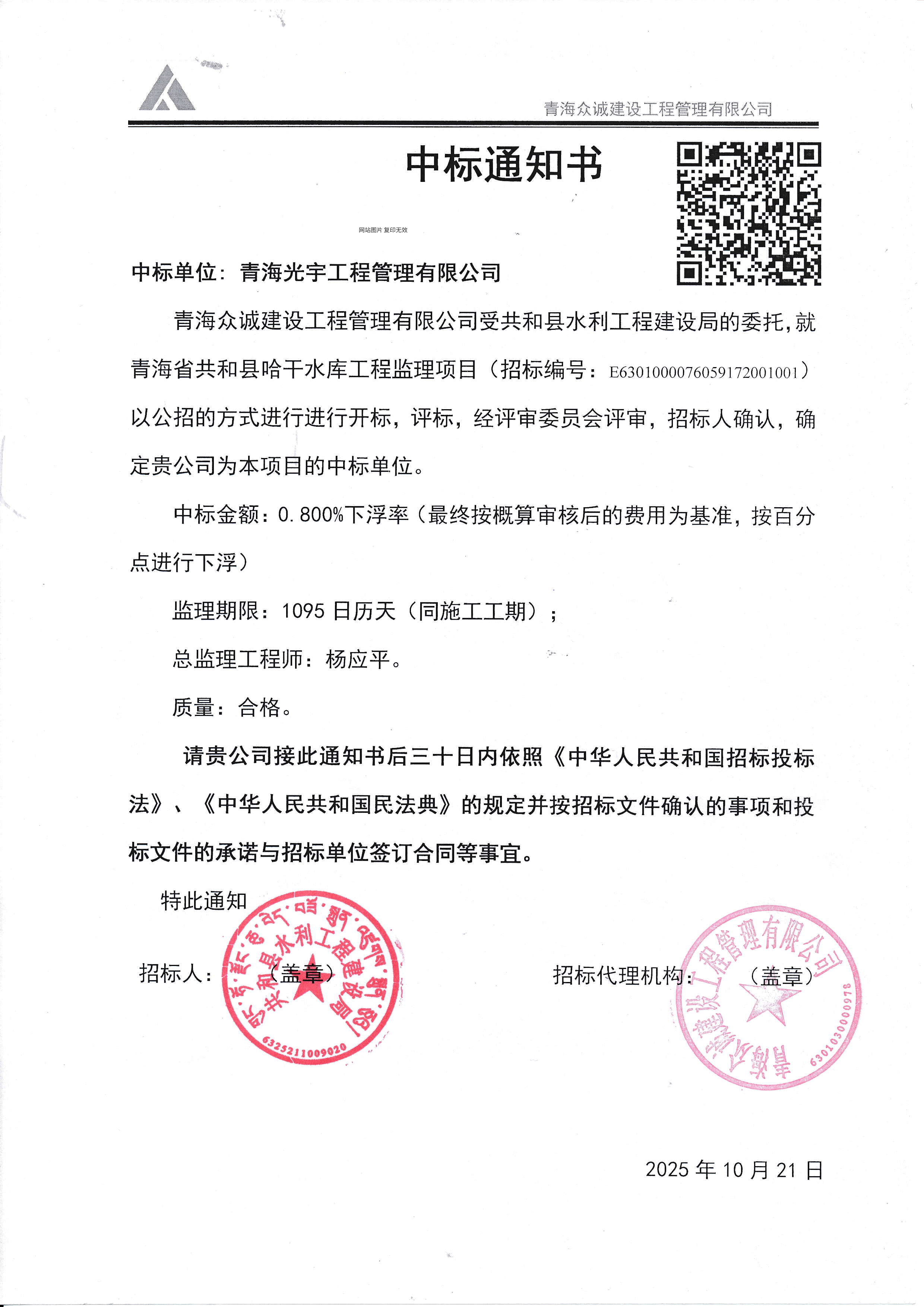 欣闻佳讯,倍感振奋!此次成功中标哈干水库监理项目,充分彰显了公司在水利工程领域的专业实力与市场竞争力。项目团队以精湛的技术水平和丰富的实践经验赢得了评标专家的一致认可,这不仅是市场对公司综合能力的肯定,更是我们业务拓展的重要里程碑。